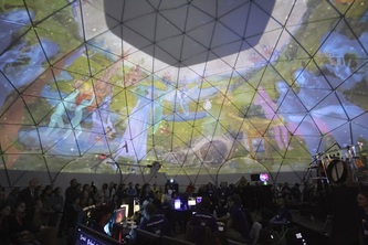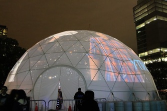 Photos left-to-right: Dome outdoors, Dreamscape and Brain Computer Interface computers during installation in Toronto, Canada.